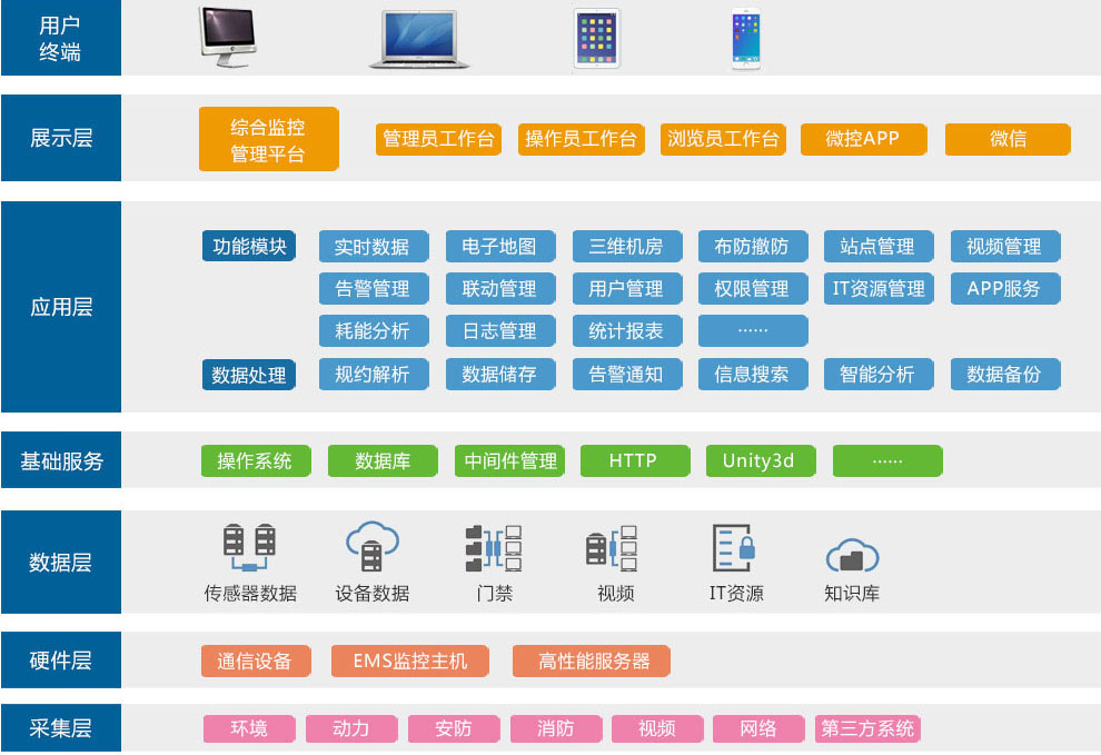 綜合監(jiān)控管理平臺(tái)是尚為研發(fā)的環(huán)境監(jiān)控中心端軟件產(chǎn)品,是一款網(wǎng)絡(luò)化機(jī)房管理業(yè)務(wù)綜合軟件平臺(tái)。通過該軟件,可將多個(gè)EMS監(jiān)控主機(jī)及其他業(yè)務(wù)系統(tǒng)整合在同一個(gè)監(jiān)控中心之下,由監(jiān)控中心對各EMS監(jiān)測站點(diǎn)發(fā)出的超標(biāo)/異常/故障告警事件、采集到實(shí)時(shí)環(huán)境數(shù)據(jù)以及監(jiān)測到的設(shè)備狀態(tài)信息實(shí)施集中收聚,實(shí)現(xiàn)管理者對所有機(jī)房及機(jī)房內(nèi)的各類環(huán)境監(jiān)控設(shè)備的遠(yuǎn)程聯(lián)網(wǎng)監(jiān)控管理。